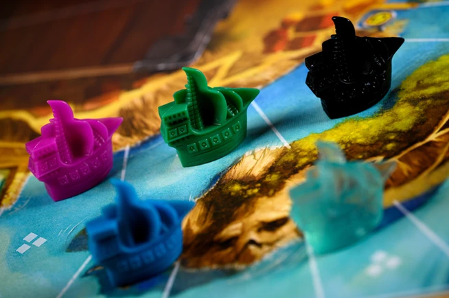 Spillet spilles i runder. Hver spiller har alltid en hånd med tre kort og en personlig tavle som viser de fem rommene på skipet sitt der varer kan lastes inn i løpet av spillet.